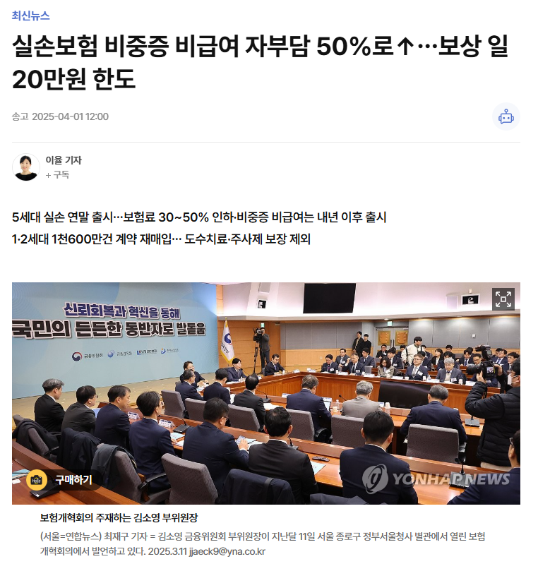 이에 따라 금융위원회는 실손보험의 지속 가능성을 높이고, 공정한 구조로 개편하기 위해 제도 개선에 나선 것입니다.