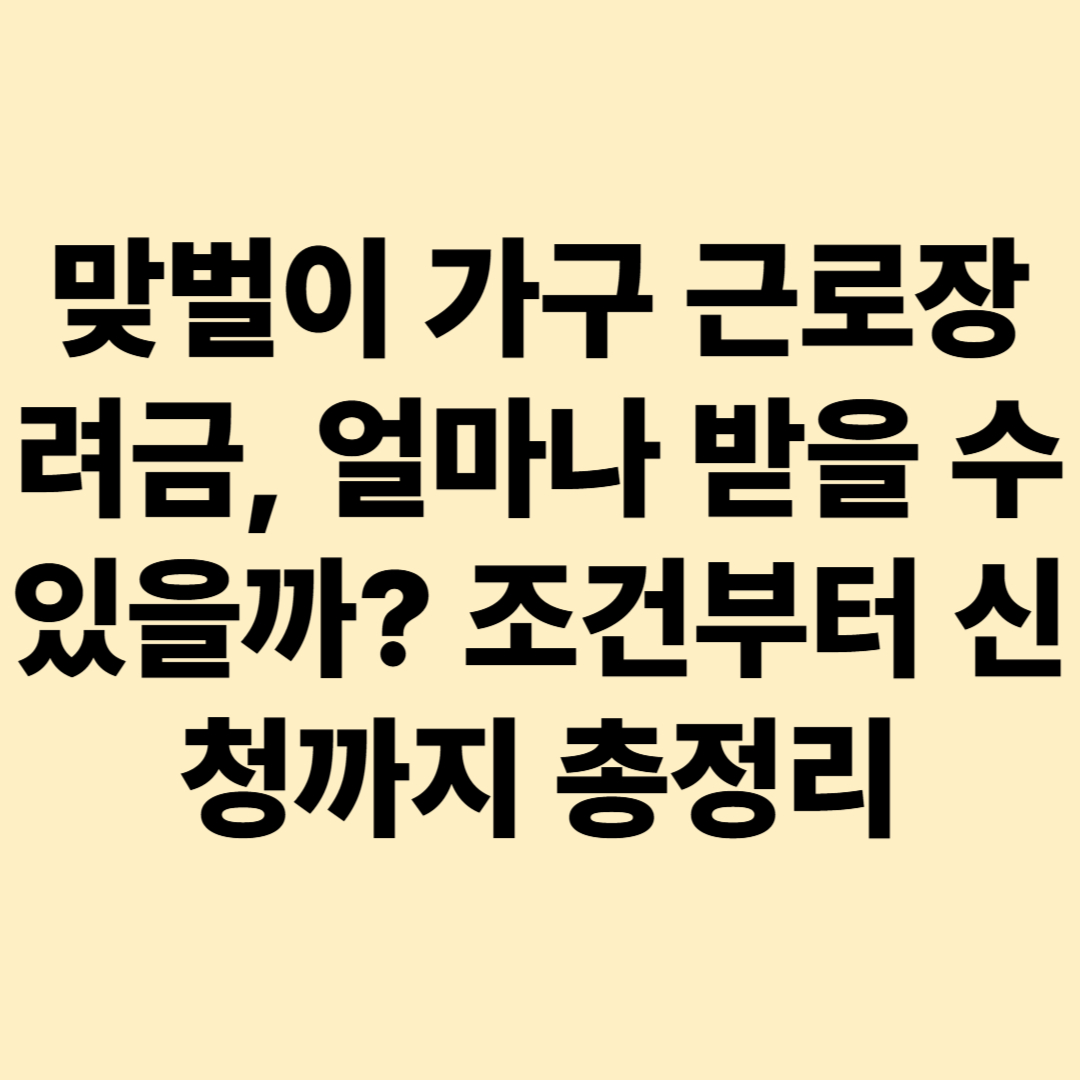 맞벌이 가구 근로장려금, 얼마나 받을 수 있을까? 조건부터 신청까지 총정리 안녕하세요스마트하게 세상을 읽는 인사이트 블로그 SmartDecision입니다. 맞벌이 부부, 진짜 바쁘고 고생 많죠. 하지만 소득이 많지 않다면 정부의 근로장려금을 통해 실질적인 도움을 받을 수 있다는 사실, 알고 계셨나요?특히 맞벌이 가구는 단독·홑벌이보다 가장 많은 금액을 받을 수 있는 가구 유형입니다.오늘은 2025년 맞벌이 가구 근로장려금 조건과 신청 방법을 핵심만 정리해드릴게요! 1. 맞벌이 가구란? 근로장려금에서 이렇게 정의합니다근로장려금에서 말하는 ‘맞벌이 가구’는본인과 배우자 모두 근로 또는 사업 소득이 있는 경우를 말합니다.✔ 단, 배우자가 2024년 총급여 300만 원 이상이라면 맞벌이로 인정됩니다.✔ 소득..